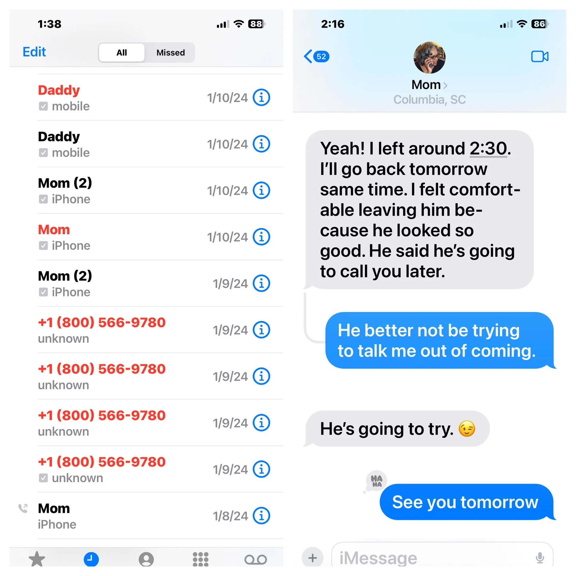 January 9th at 10:27 pm - Mom calling again to tell me not to worry, get some sleep. She puts daddy on the phone so I can hear his voice and he sounds like daddy.